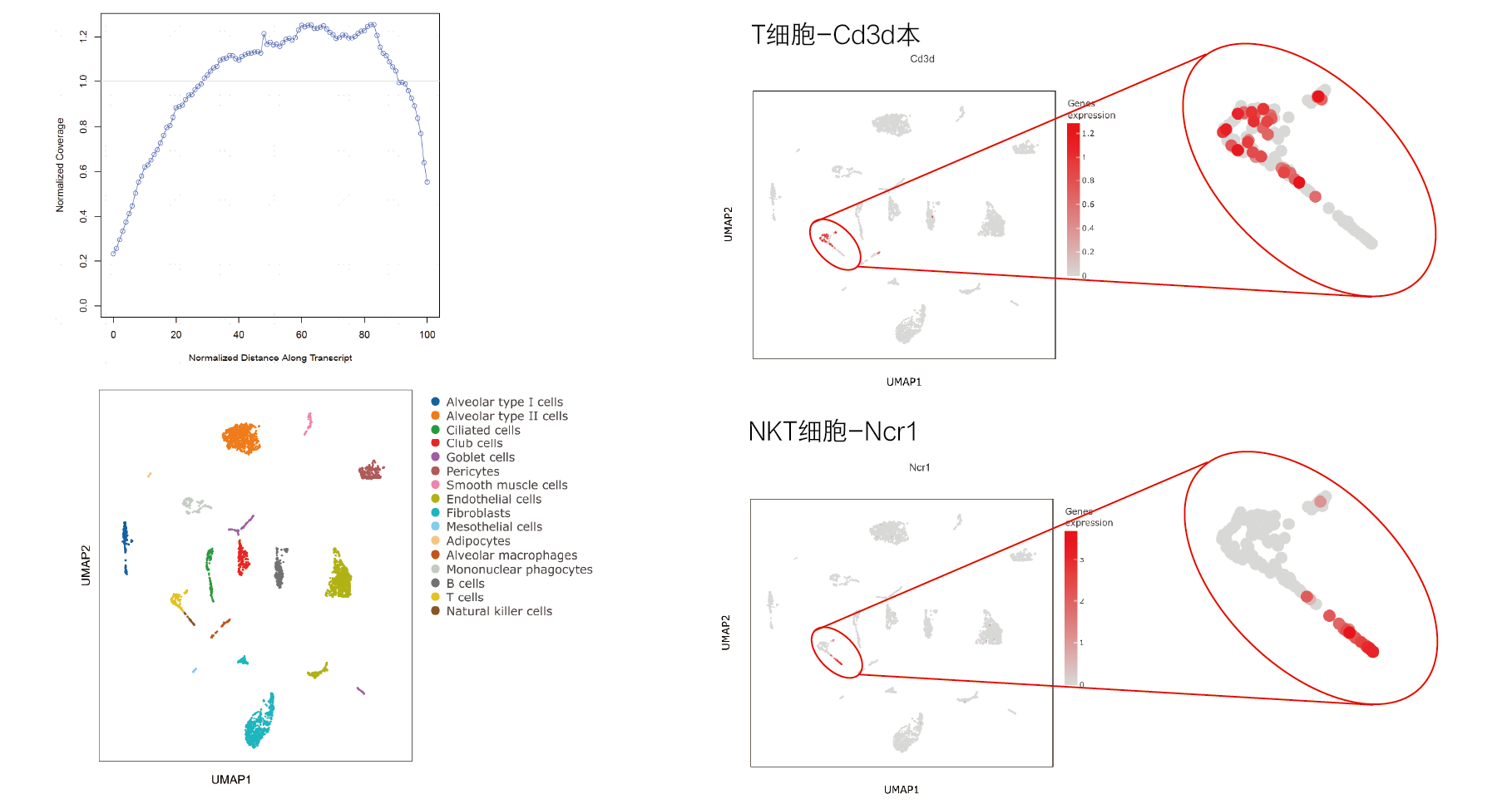 以小鼠肺FFPE样本为例,成功注释出各样本中不同类型的细胞,且各个亚群分布合理,相临近的细胞类型能很好区分;同时实现对转录本3'至5'端的均匀覆盖。